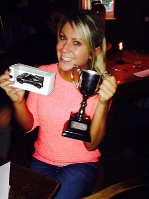 The two winning teams were the Good Fellows ‘Husbands Team’ and the 3P Club ‘Collins Girls’! Well done to both…the ‘Husbands’ were camera shy but the Collins Girls namely Lucy was proud to hold the trophy aloft.