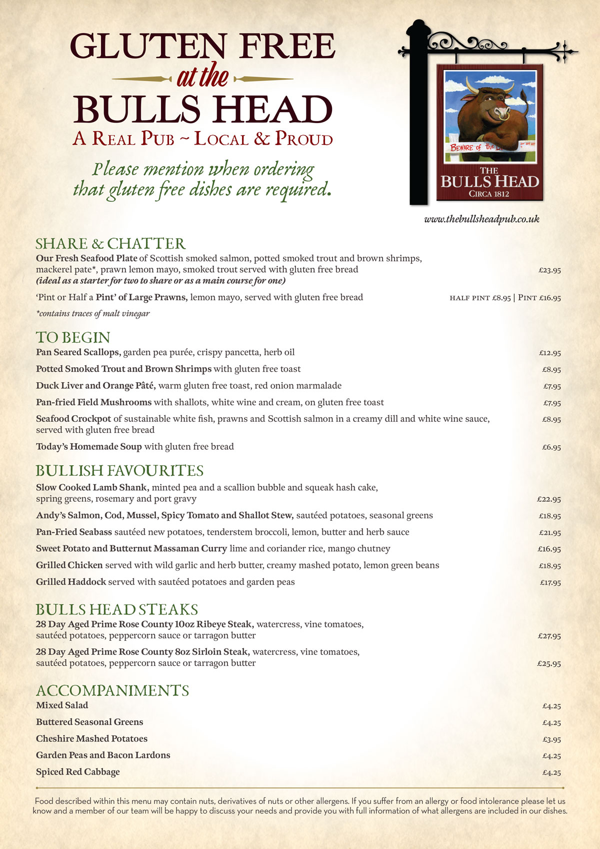 Gluten Free Menu